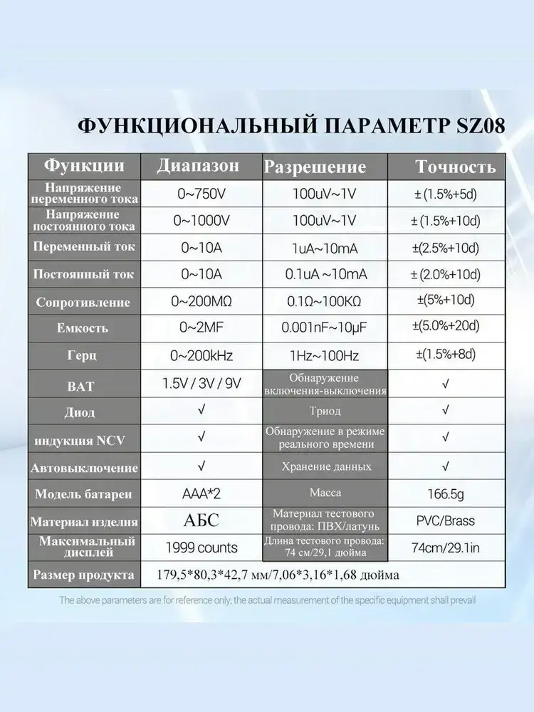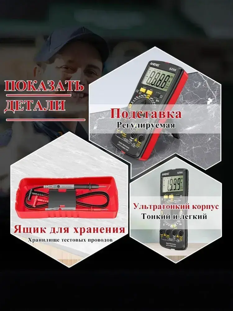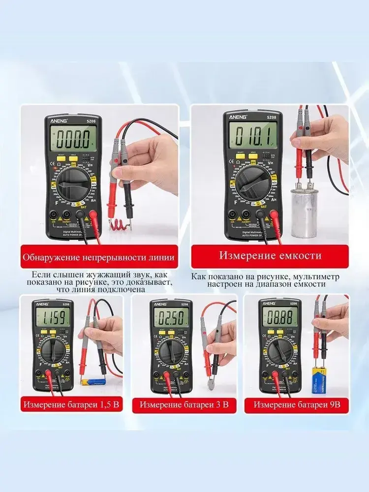 Мультиметр , портативный мультиметр цифровой, для измерения напряжения переменного и постоянного тока, автоматическое определение диапазона