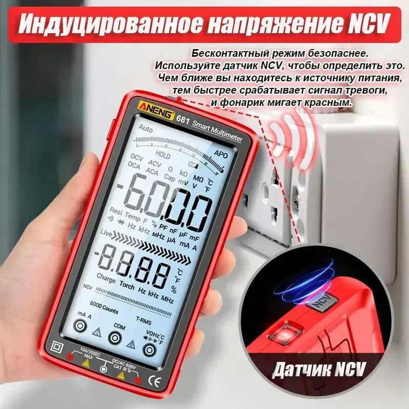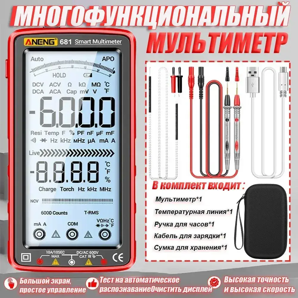 мультиметр цифровой ANENG 681 измерение напряжения, тока, сопротивления, диода и т. д., бытовые вилки