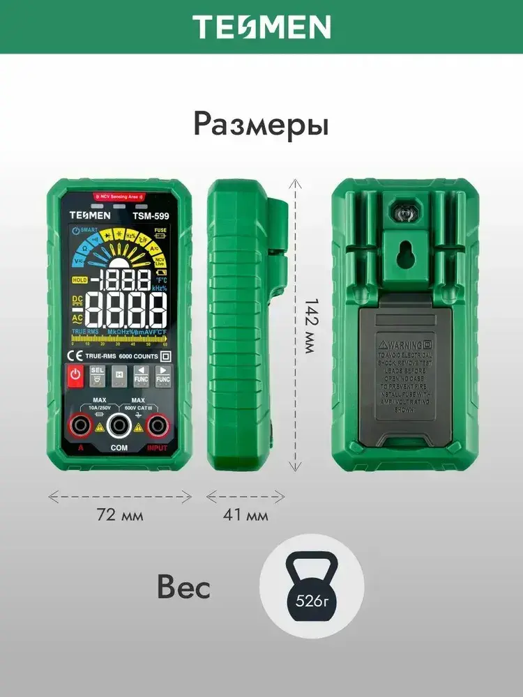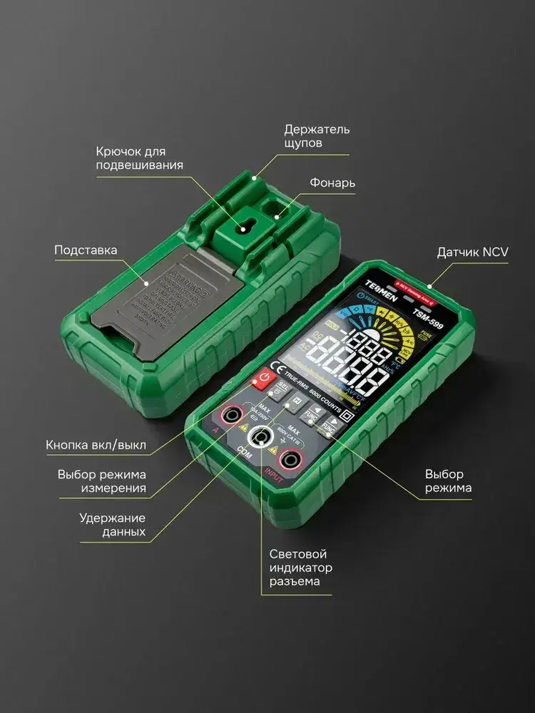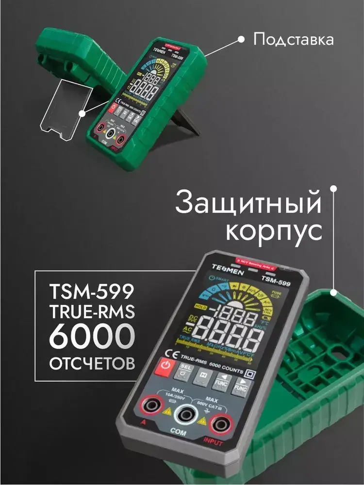 Мультиметр Цифровой автоматический TESMEN TSM-599 6000 отсчетов с защитным предохранителем, с измерением переменного и постоянного тока