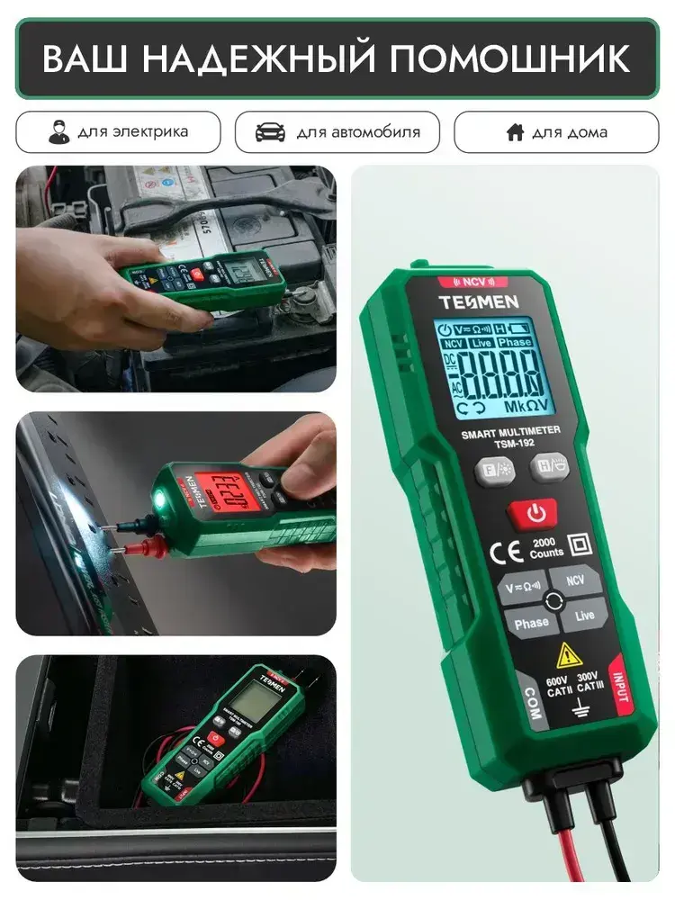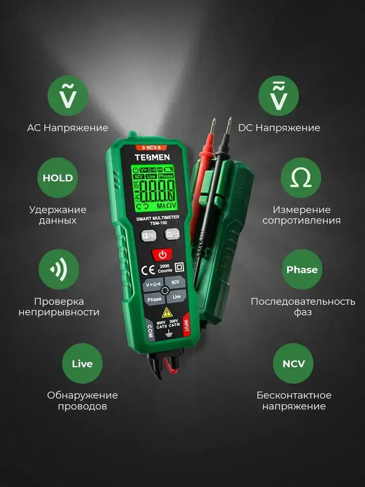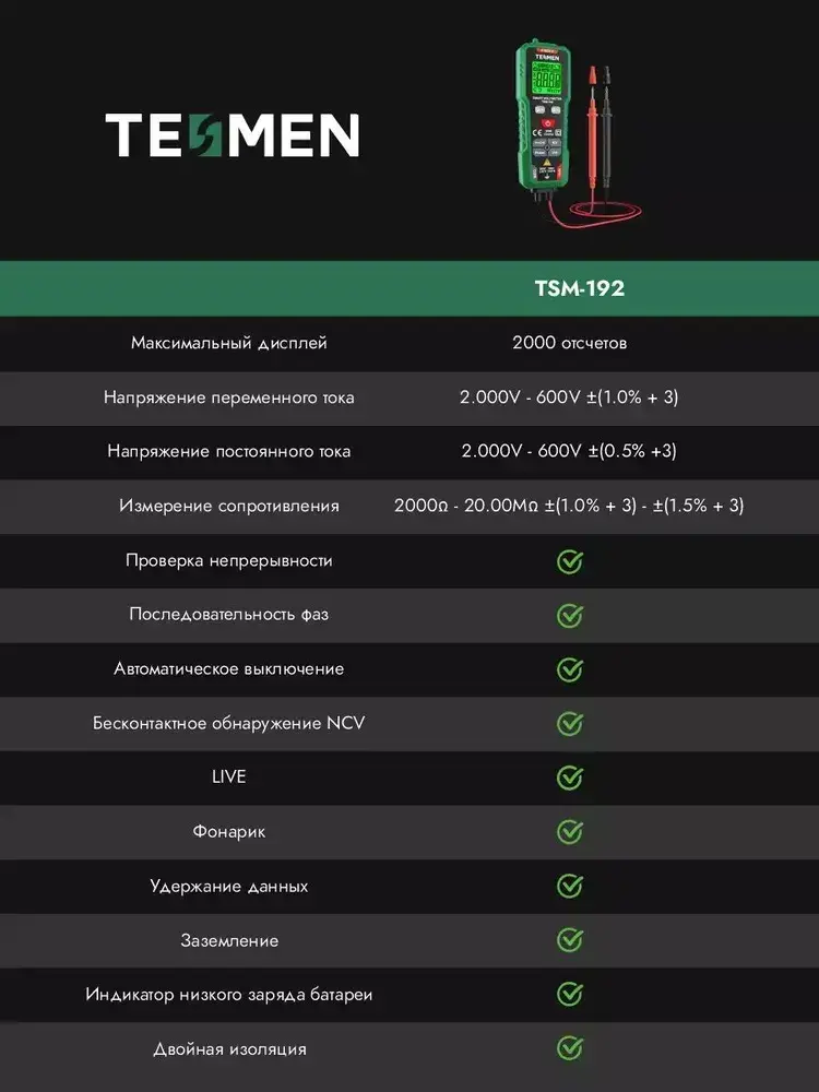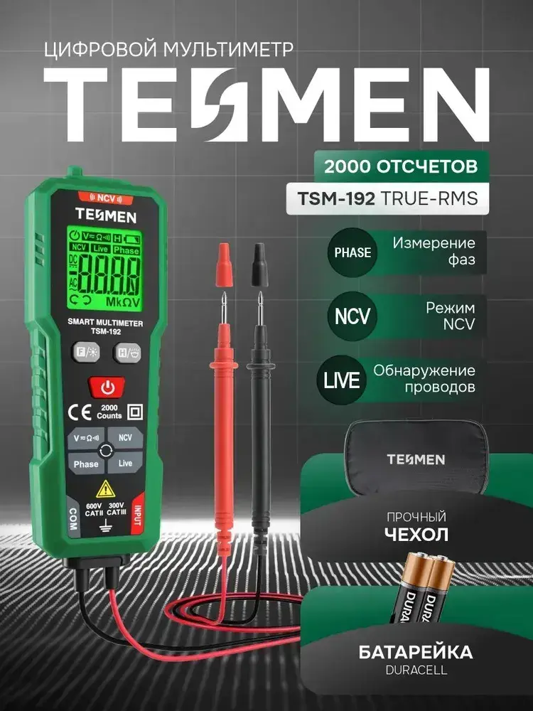Мультиметр Цифровой с прозвонкой TESMEN TSM-192 измерительный тестер электрический
