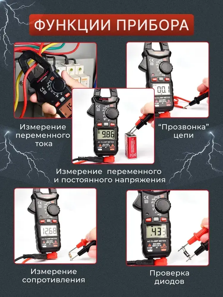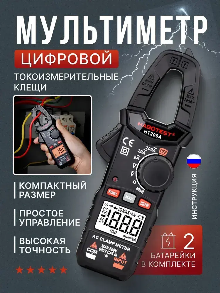 Мультиметр цифровой, Токоизмерительные клещи HT200A