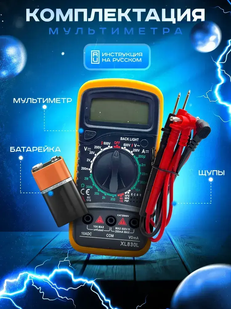 Мультиметр цифровой XL830L с прозвонкой, тестер тока и напряжения до 600В, электрический вольтметр, амперметр токоизмерительный портативный для авто и электромонтажа