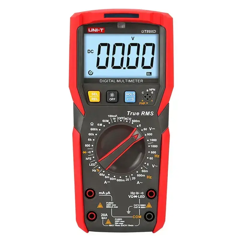 Мультиметр UNI-T UT89XD с TrueRMS: напряжение(1000B), ток(20A), сопротивление(60МOм), частота, ёмкость (100mF), NCV