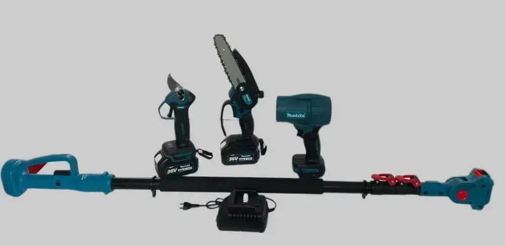 Набор 4в1 аккумуляторных инструментов садовый, пила цепная, сучкорез, штанга, воздуходувка, секатор, 2 АКБ