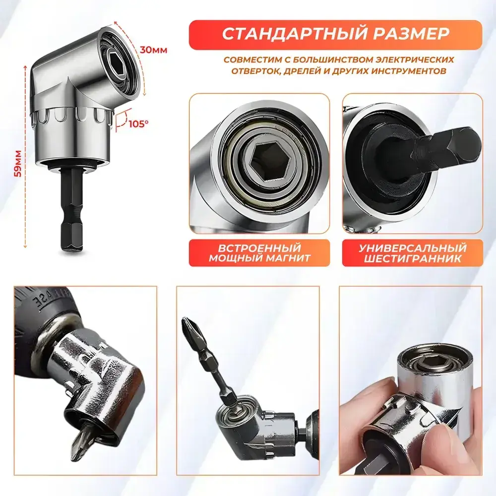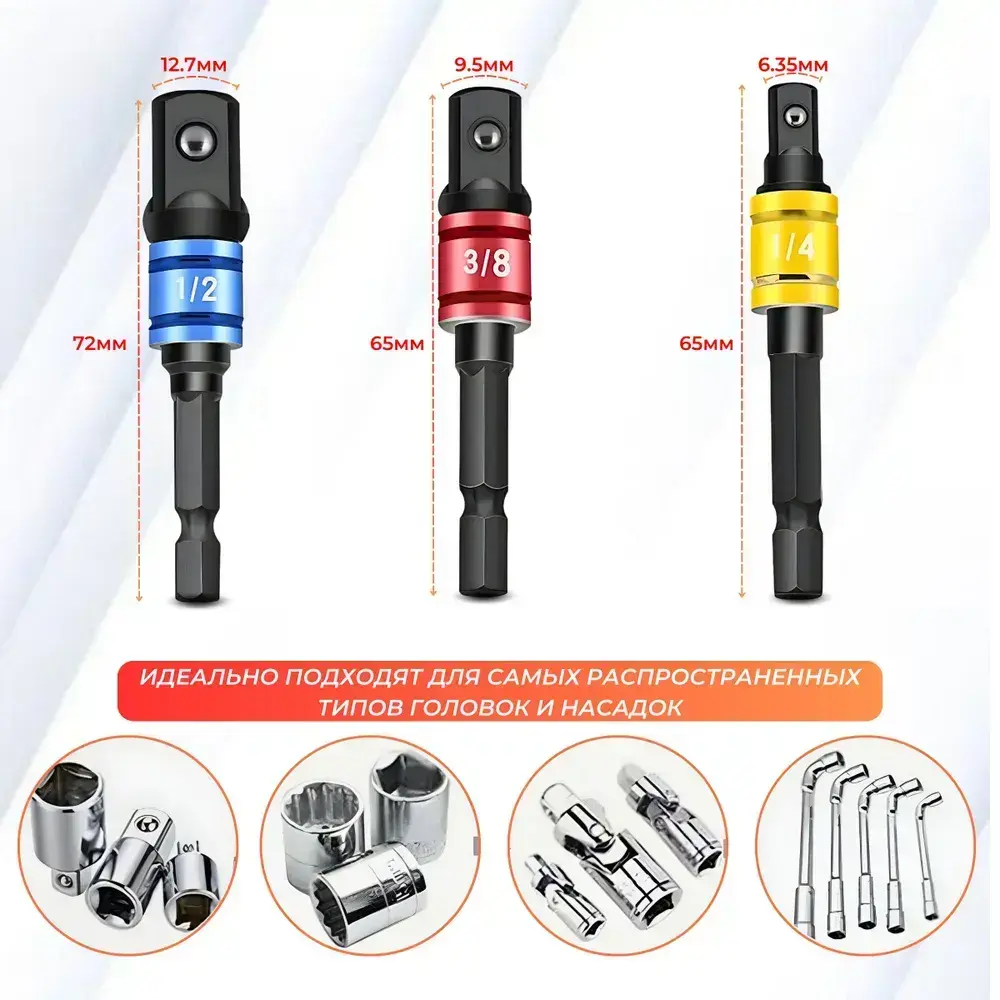 Набор адаптеров для торцевых головок 1/4, 3/8, 1/2 дюйма для гайковерта и шуруповерта, набор 4 шт., легированная сталь