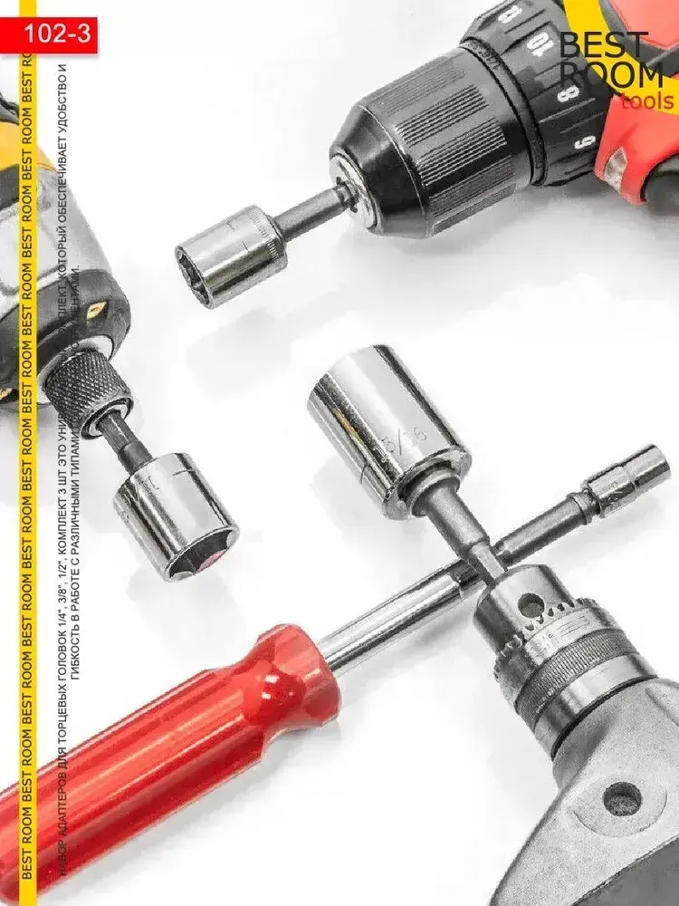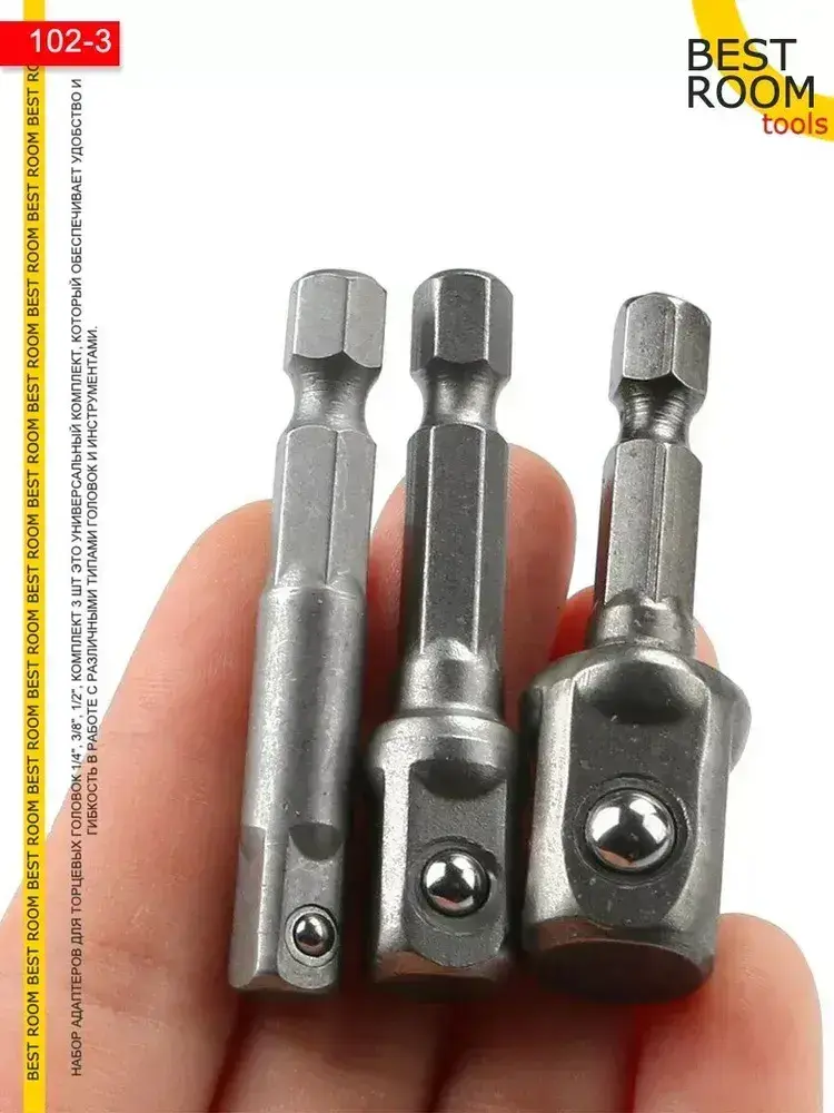 Набор адаптеров для торцевых головок 1/4", 3/8", 1/2", комплект 3 шт / Адаптер для инструментов