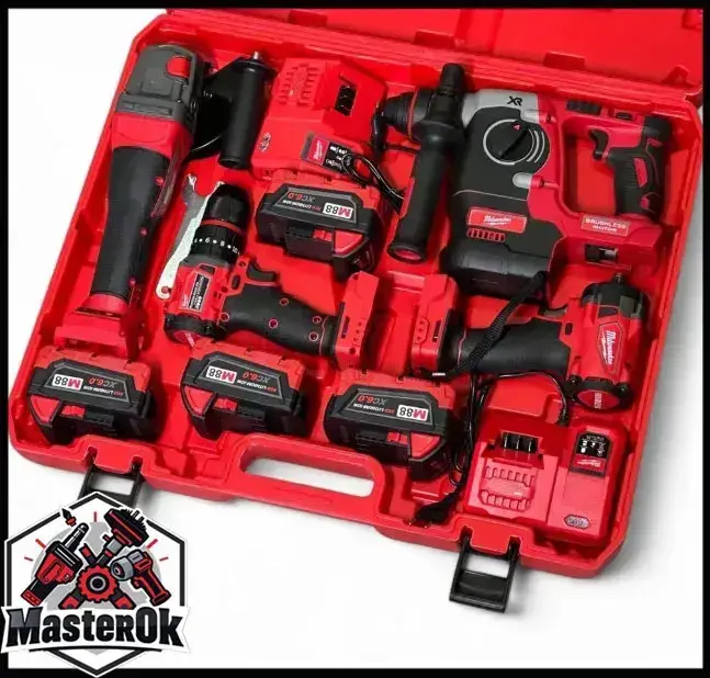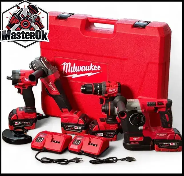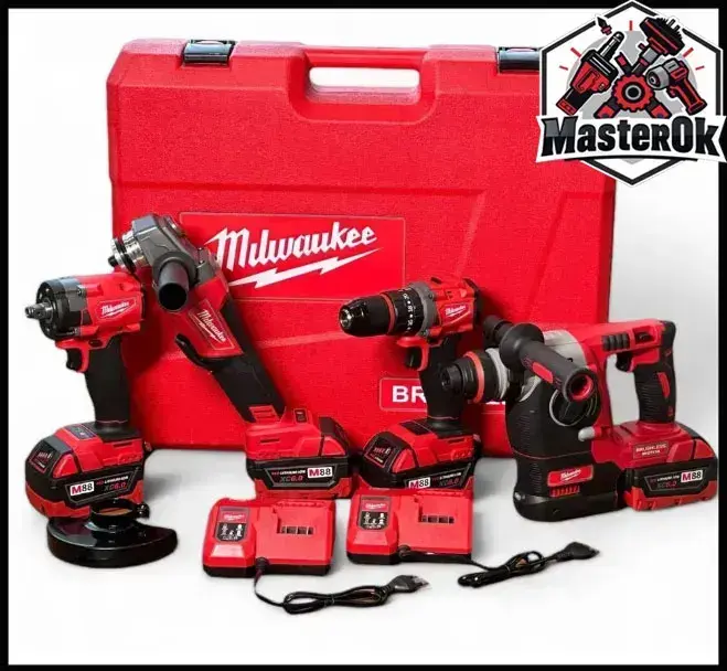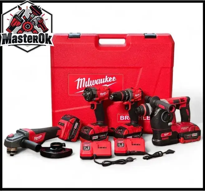Набор аккумуляторного электроинструмента инструмента Milwaukee 4в1 с 4 АКБ Шуруповерт Болгарка Перфоратор Гайковерт 21V