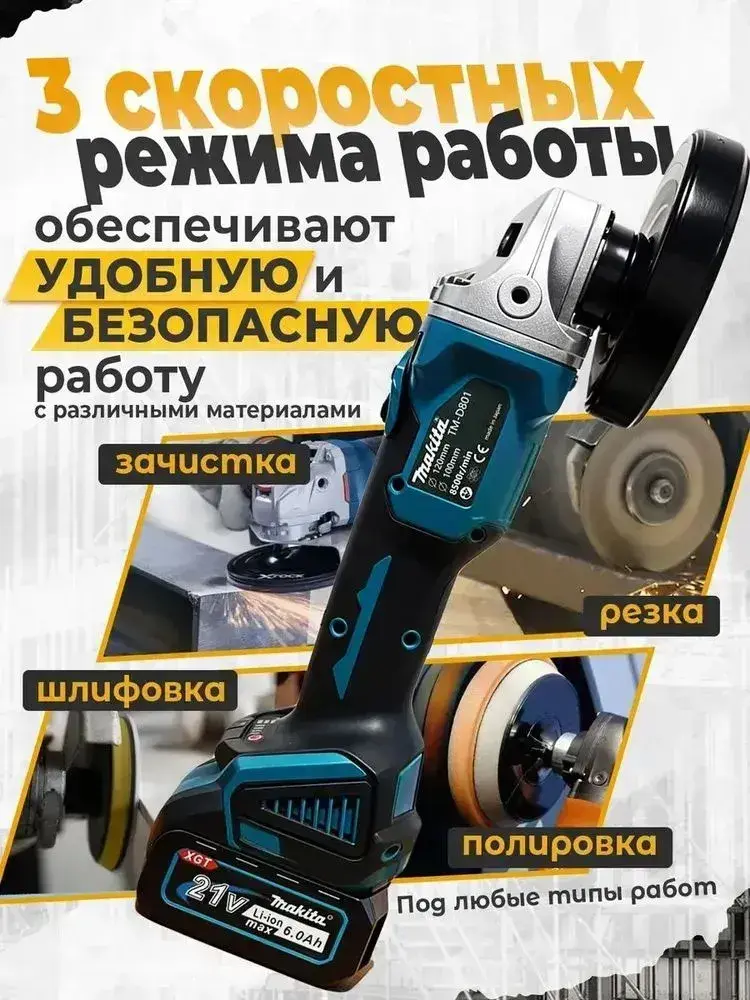 Набор Аккумуляторного Инструмента 3в1 Mkta. 21В 6 Ач / Шуруповерт, Гайковерт, Болгарка