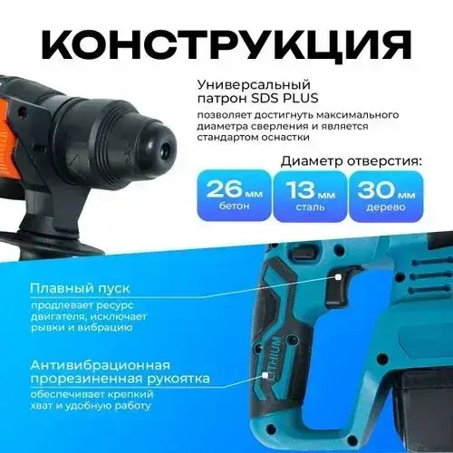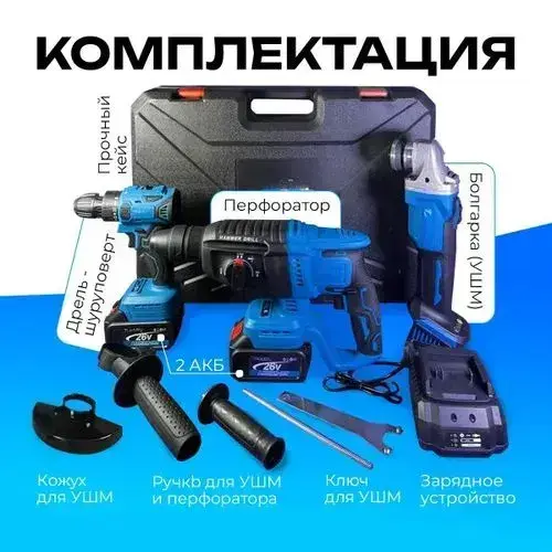 Набор аккумуляторного инструмента 3в1, шуруповерт, болгарка, перфоратор, 2 АКБ