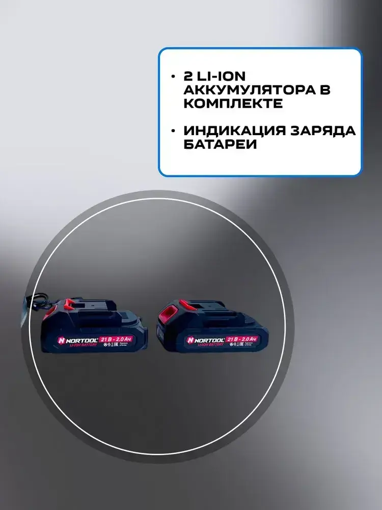 Набор аккумуляторных инструментов Nortool шур. CD21B, ушм CGA21B
