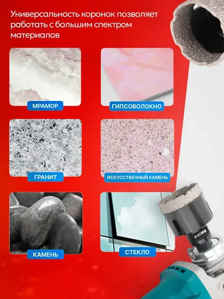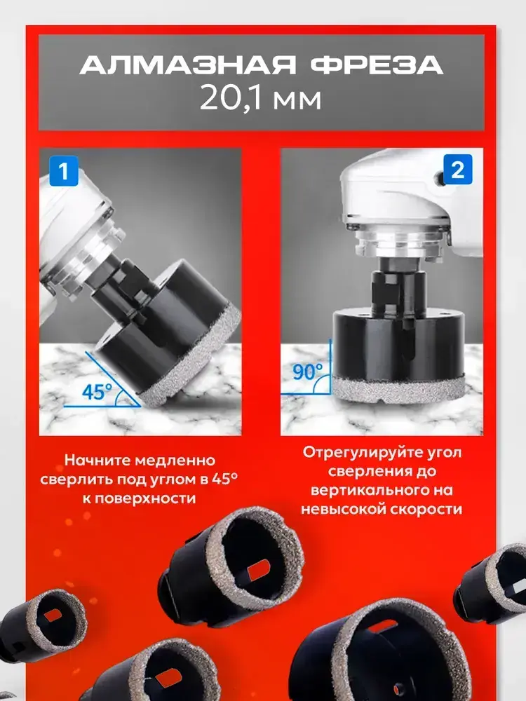Набор алмазных коронок по керамограниту Doriru 11 шт, 20-110 мм