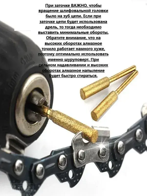 Набор алмазных шлифовальных головок 4.8 мм - 6 шт. для заточки цепей бензиновых и электропил.