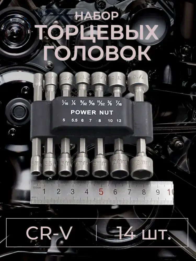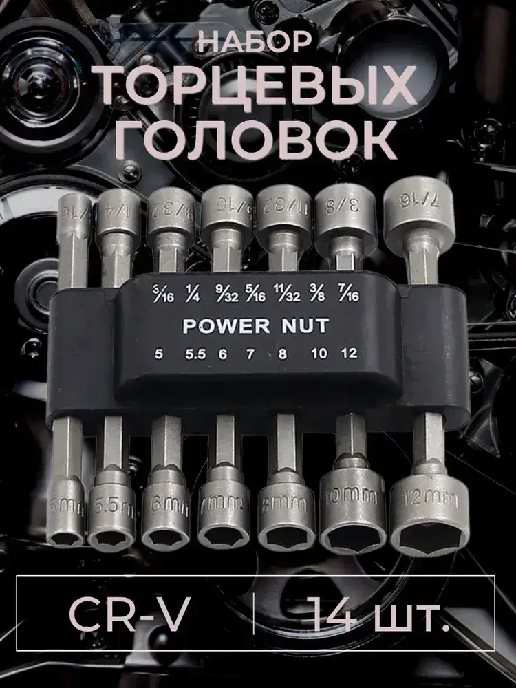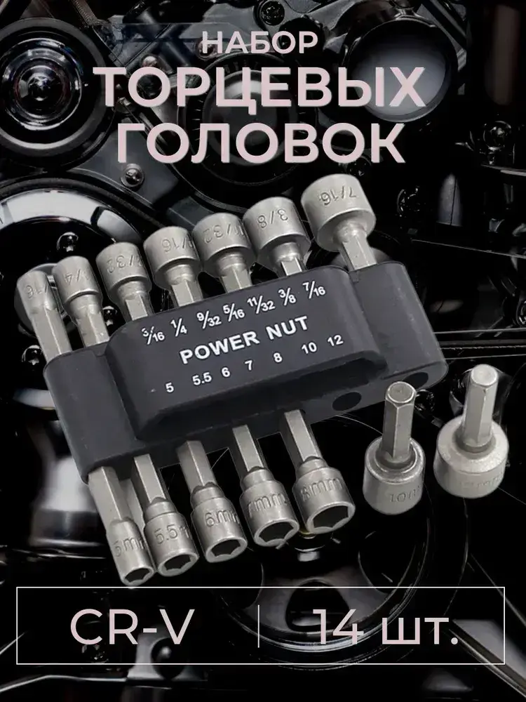Набор бит с торцевой головкой для шуруповёрта или отвёртки 14 шт.