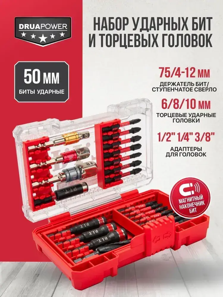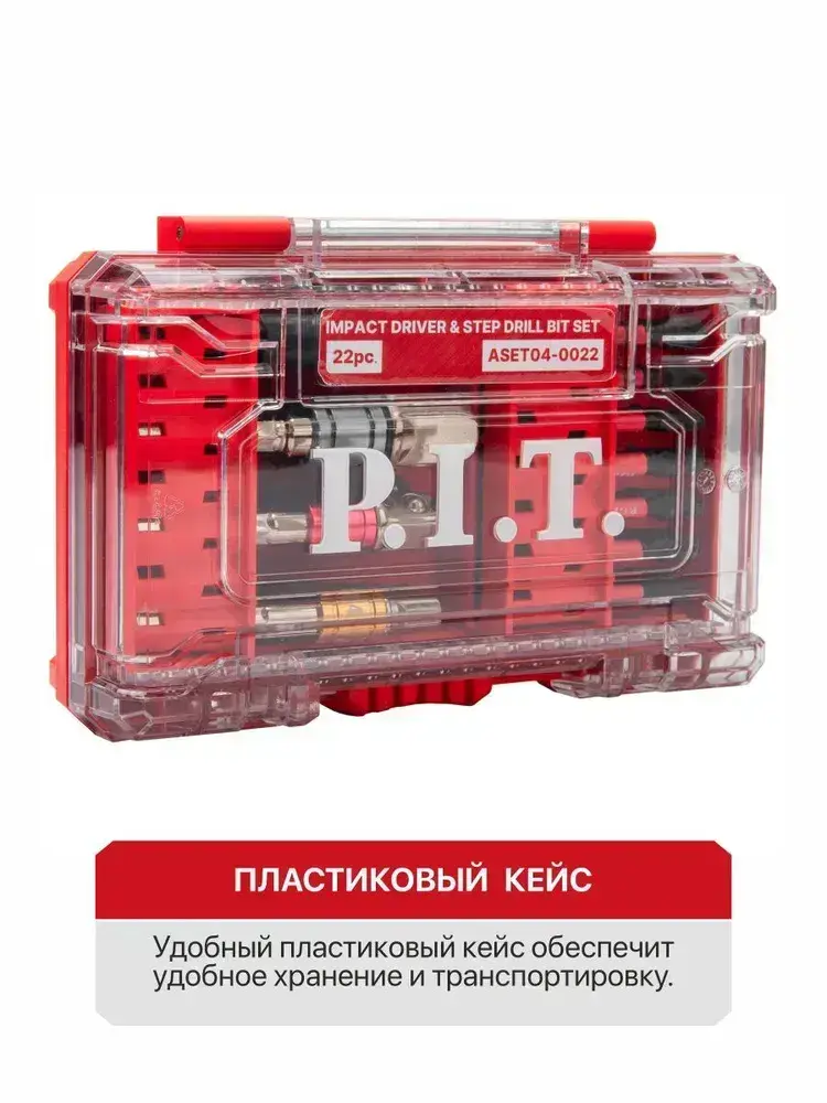 Набор бит ударных и торцевых головок P.I.T. DRUA ASET04-0022 (22шт, адапт. 1/2",1/4",3/8", ступ.св.)