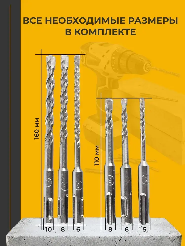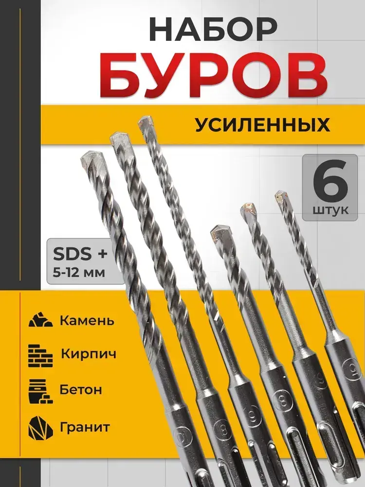 Набор буров по бетону для перфоратора 6шт