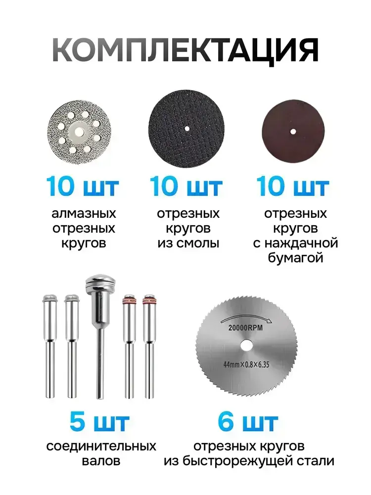 Набор дисков и отрезных кругов для гравера, дрели, шуруповерта