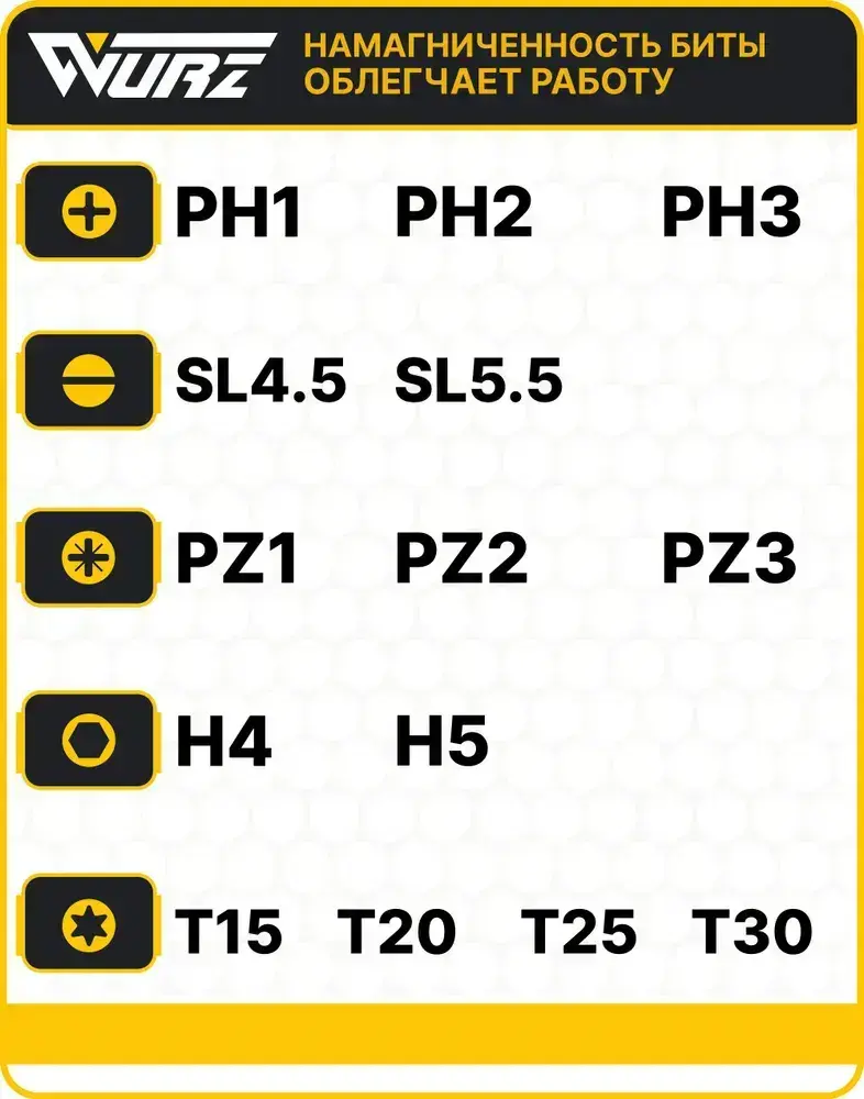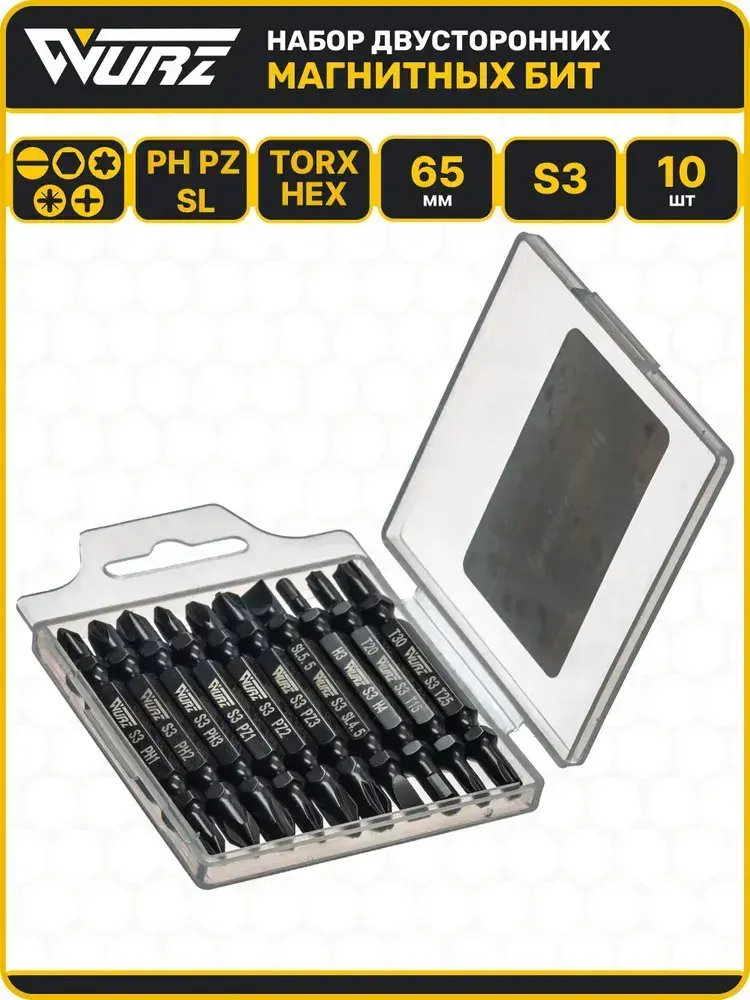 Набор двусторонних бит 65мм S3 10шт. WURZ 4202