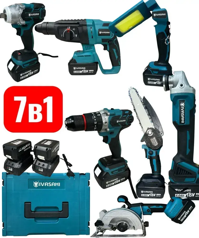 Набор электроинструментов аккумуляторных 9в1