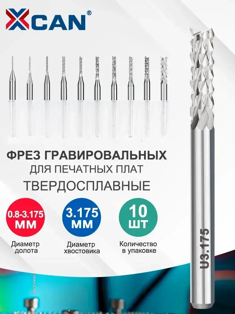 Набор фрез рашпильных кукуруза XCAN 0,8-3,175 мм для печатных плат, 10 шт.