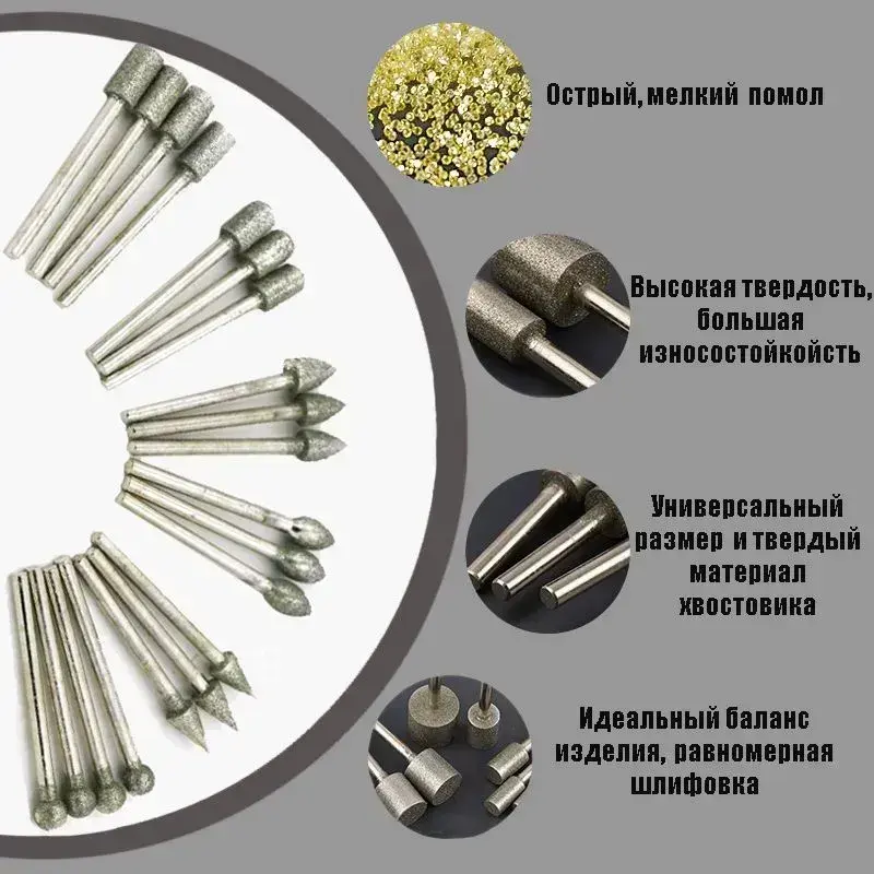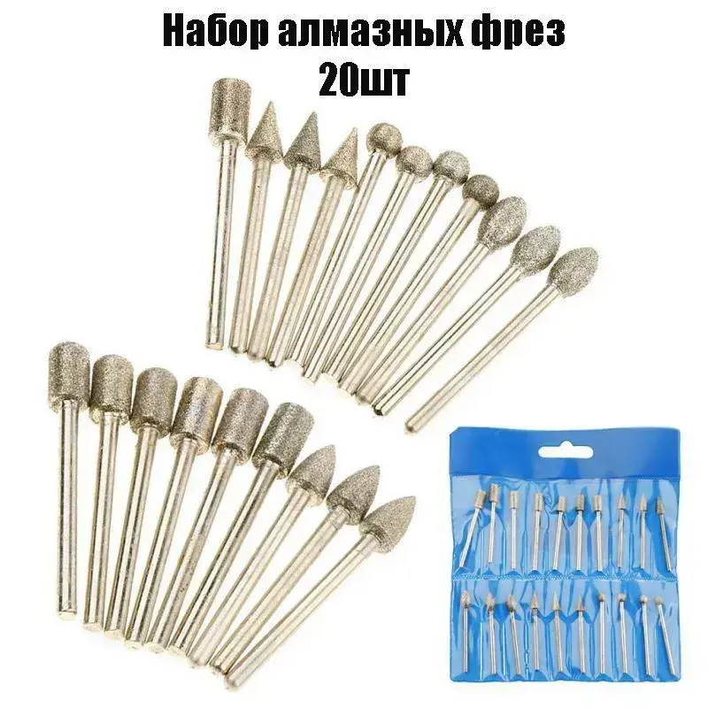 Набор фрез твердосплавных абразивных с алмазным напылением, шарошки, заточки, зенковки, мини-фрезы для гравера для дрели для шлифмашины