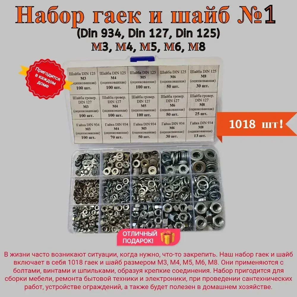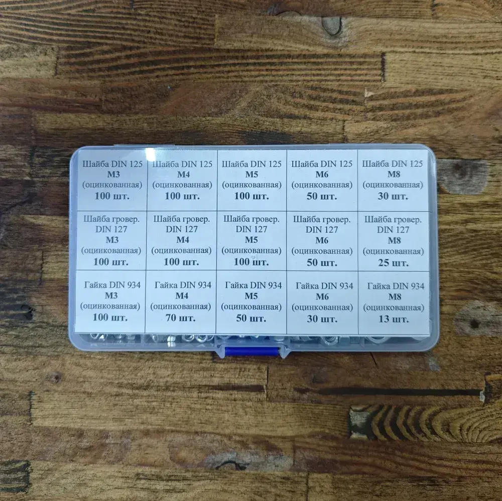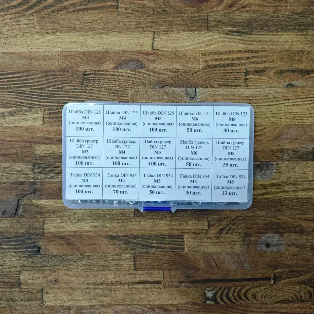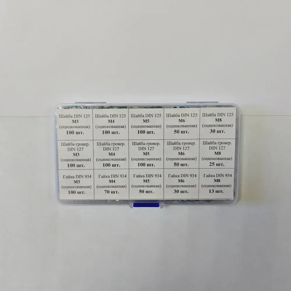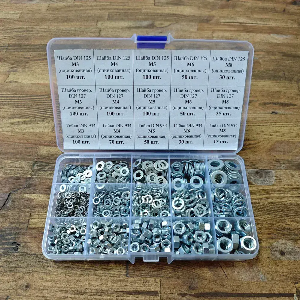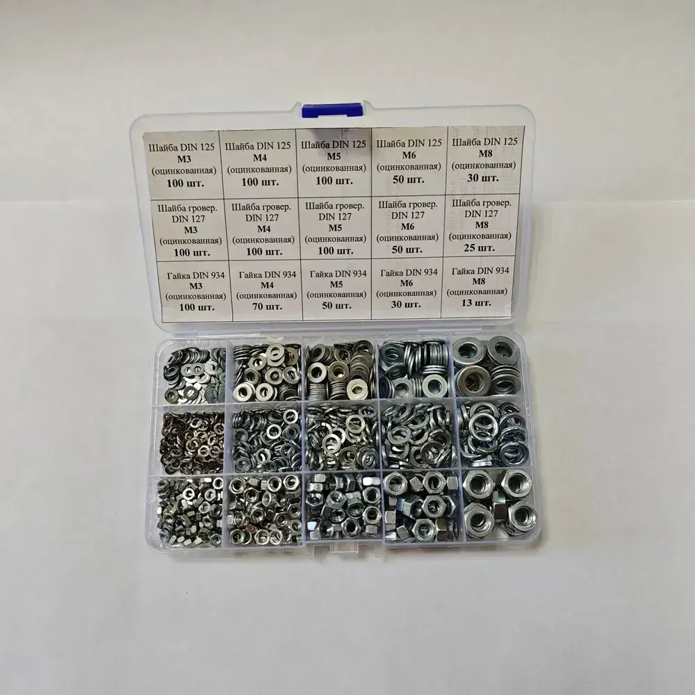 Набор гаек и шайб №1 (Din 934, Din 127, Din 125) М3, М4, М5, М6, М8.
