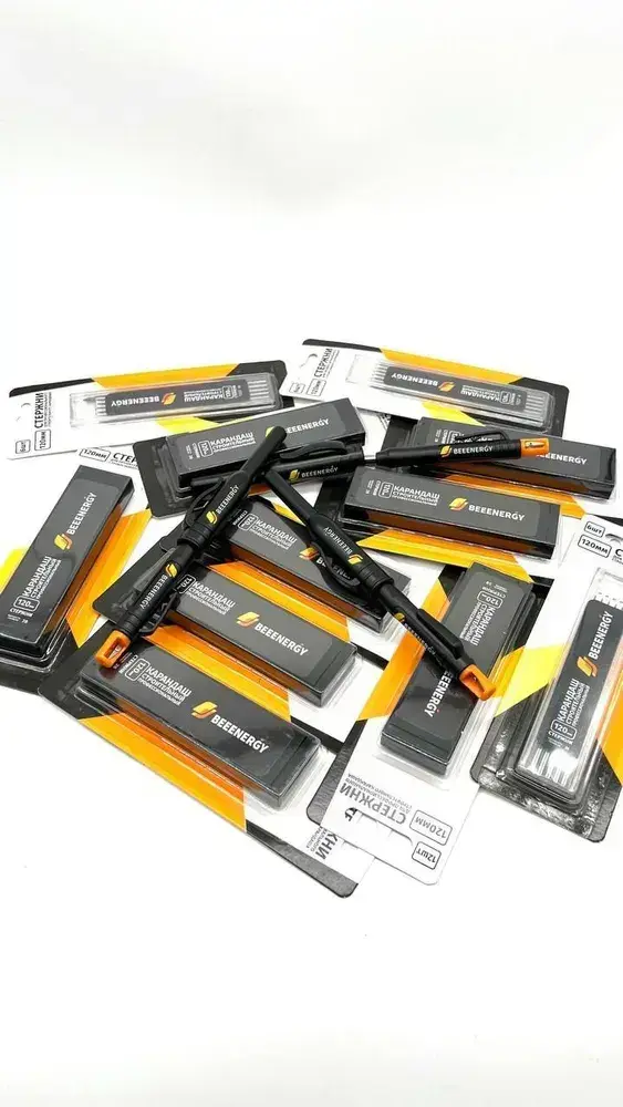 Набор грифелей 6 шт. для строительного карандаша "Beeenergy" в выдвижном пенале (твердость2B)