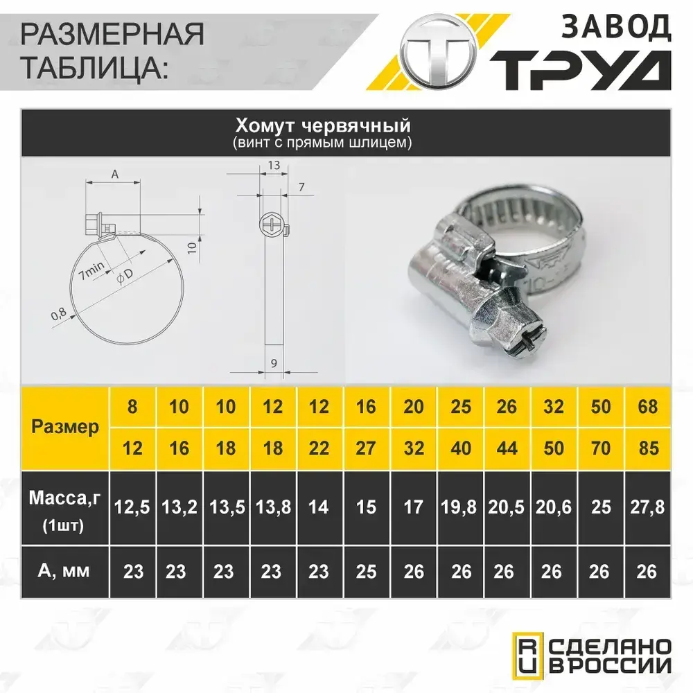 Набор хомутов 50-70 5 шт хомут червячный универсальный