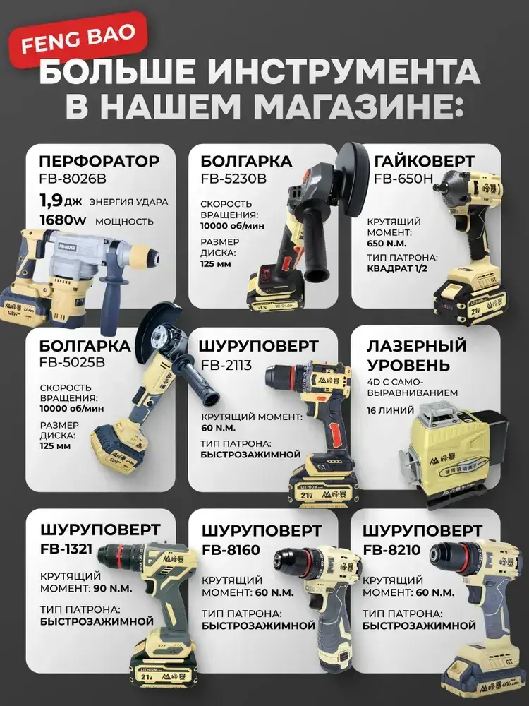 Набор инструментов Feng Bao 3 в 1, Гайковерт 1200, Ушм 5030, перфоратор 8026, кейс
