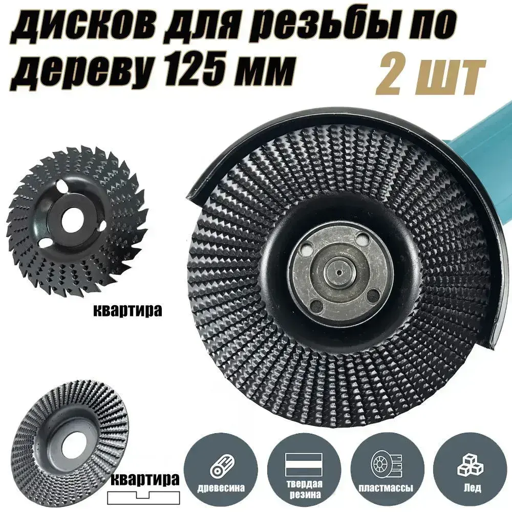 Набор из 2 дисков для резьбы по дереву, угловая шлифовальная машина 125мм с оправкой 22 мм, шлифовальный круг для резки дерева / Набор для полировки / Круг зачистной