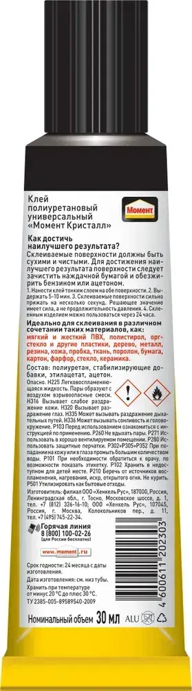 Набор из 2 шт Клей Момент Кристалл Прозрачный Универсальный Водостойкий 30 мл