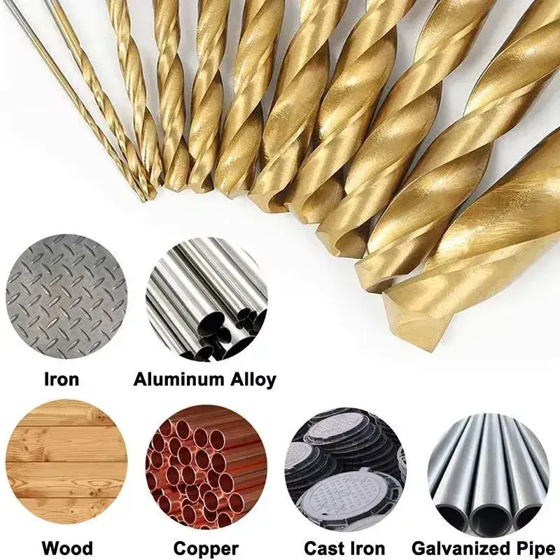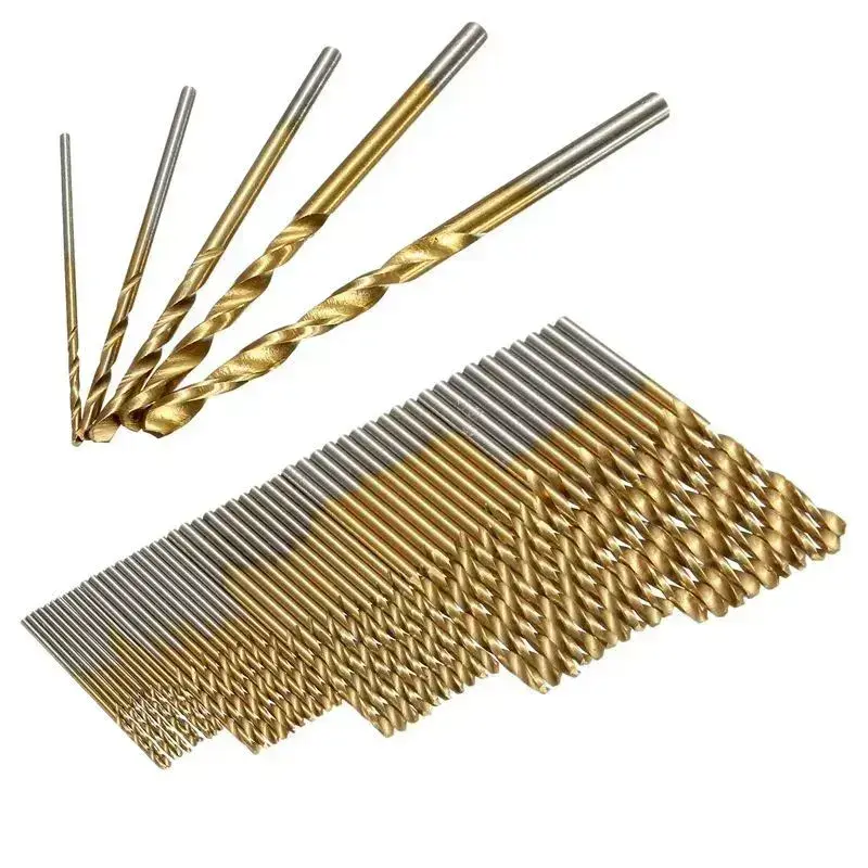 Набор из 50 сверл с титановым покрытием для сверления металла, дерева, алюминия