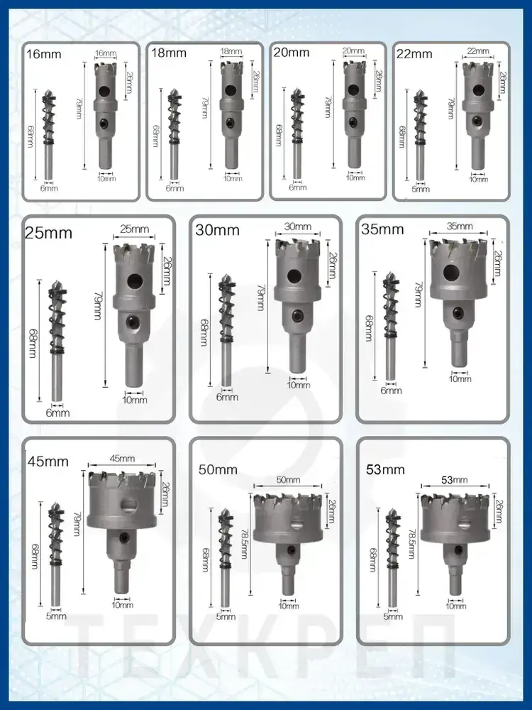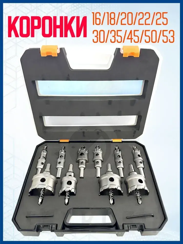 Набор коронок PRO по металлу. 10 предметов. 16-53 мм