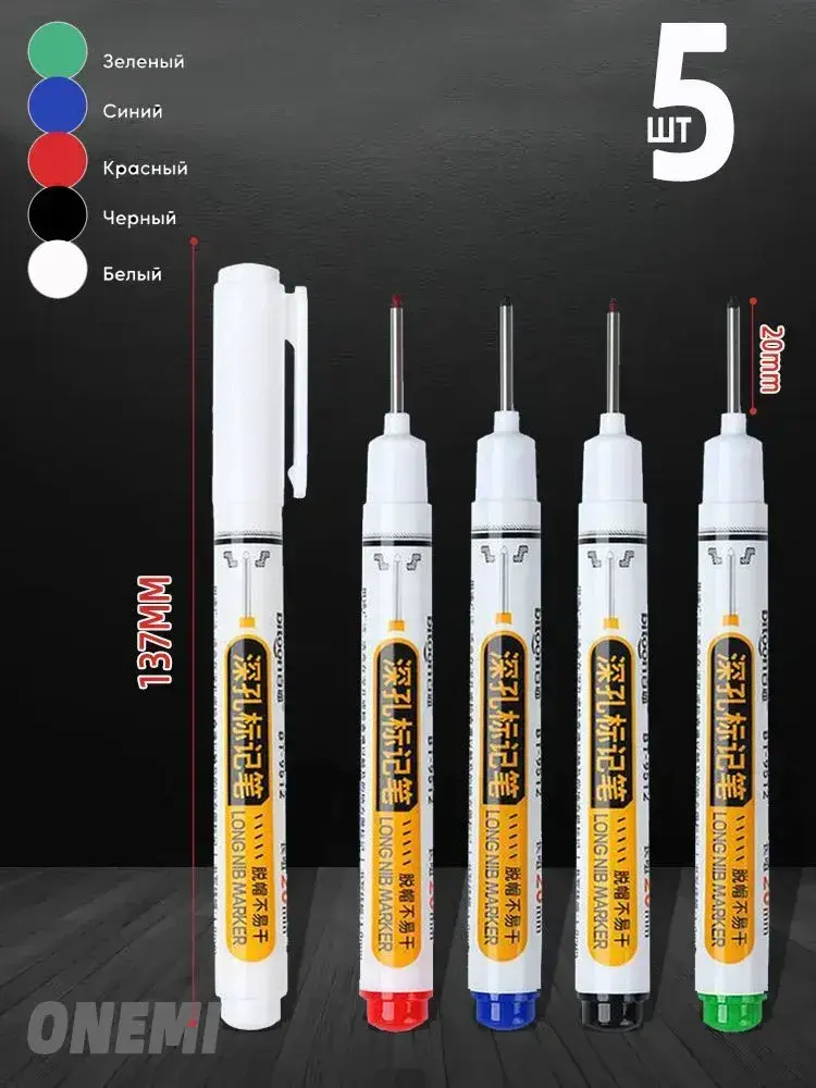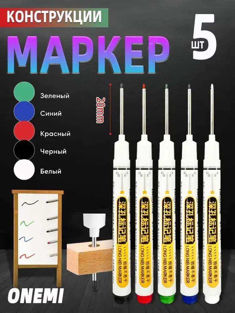 Набор маркеров с длинным стержнем 5 цвета/Маркер строительный с длинным наконечником для разметки (черный, красный, синий, зеленый, белый)