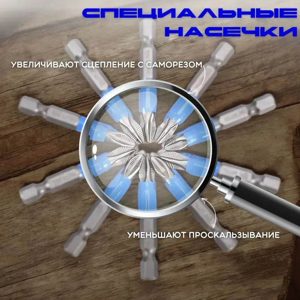 Набор намагниченных бит 10 шт.,хвостовик 1/4, PH2 х 50 мм, сталь S2