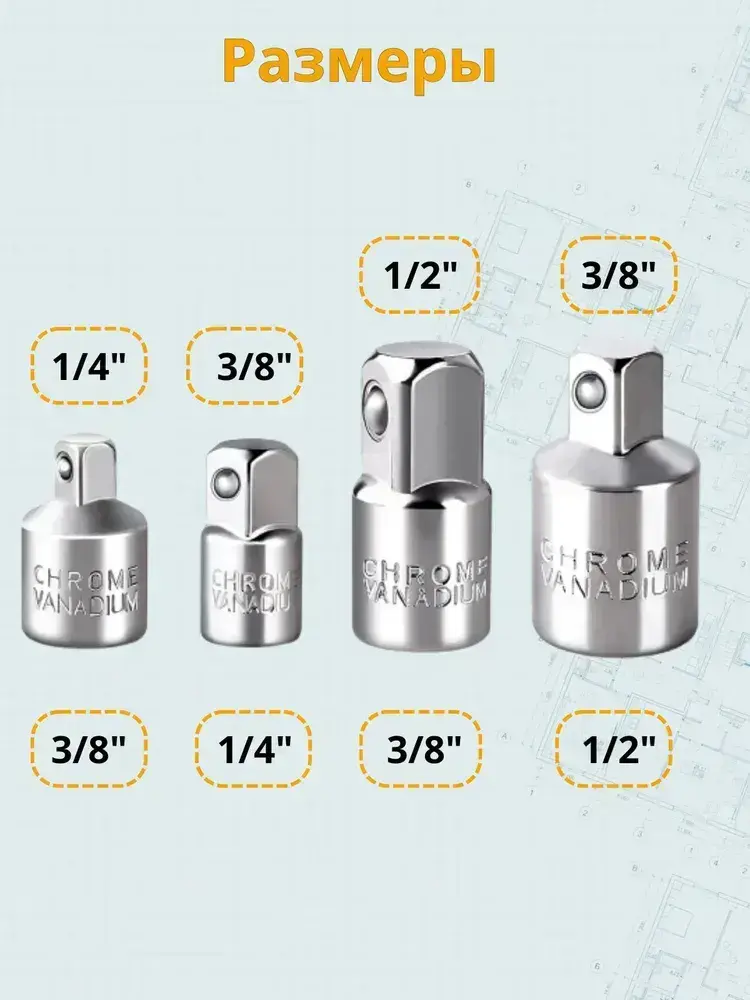 Набор переходников адаптеров для головок 1/2, 3/8 и 1/4" 4 предмета