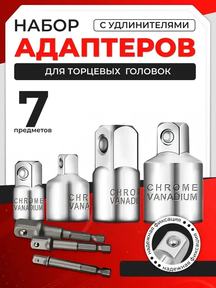 Набор переходников адаптеров для головок 1/2, 3/8 и 1/4" 7 предметов