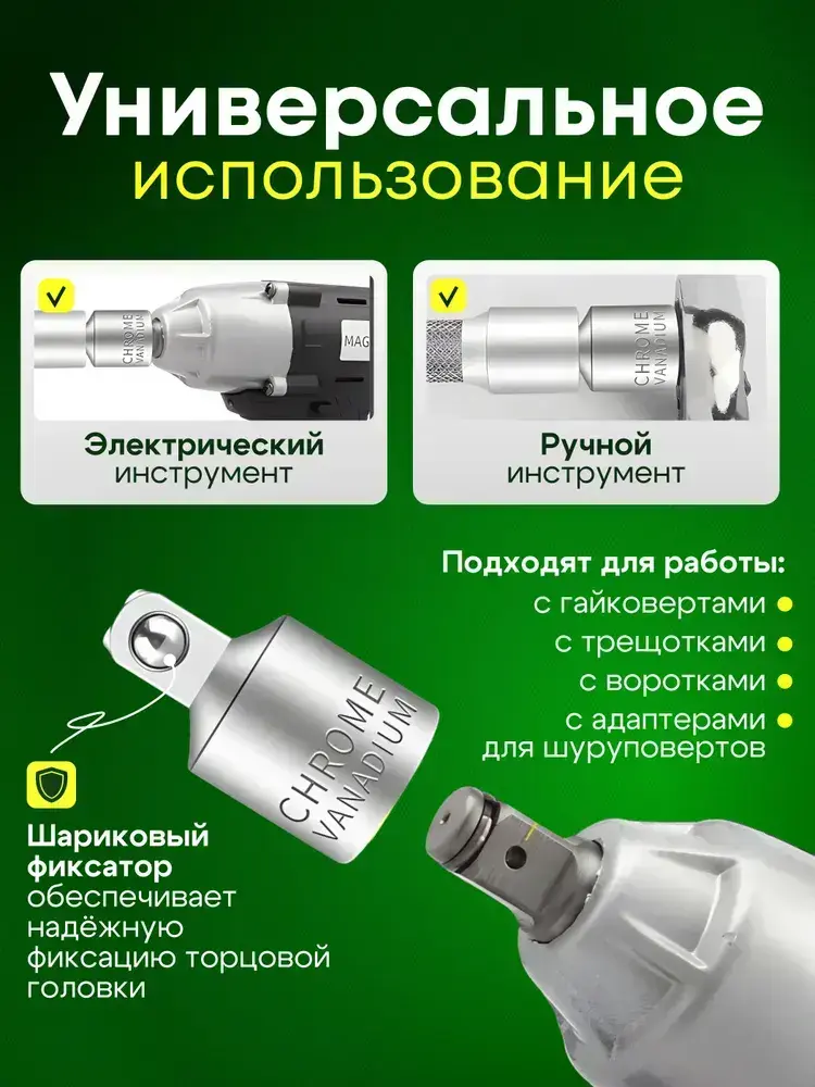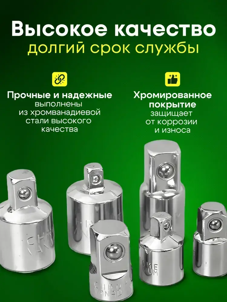 Набор переходников для торцевых головок 1/2, 3/8 и 1/4. 6 шт.