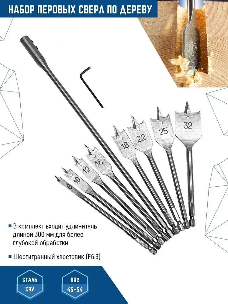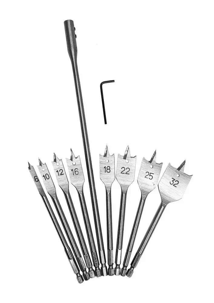 Набор перьевых сверл по дереву 8шт с удлинителем