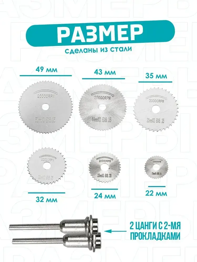 Набор пильных дисков для гравера 5 шт HSS по дереву, металлу, насадки для мини дрели / дремеля, диски по дереву и металлу. 6 шт.