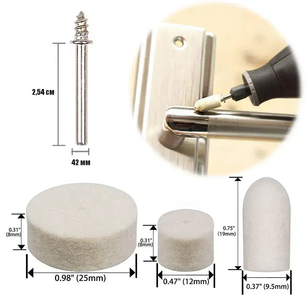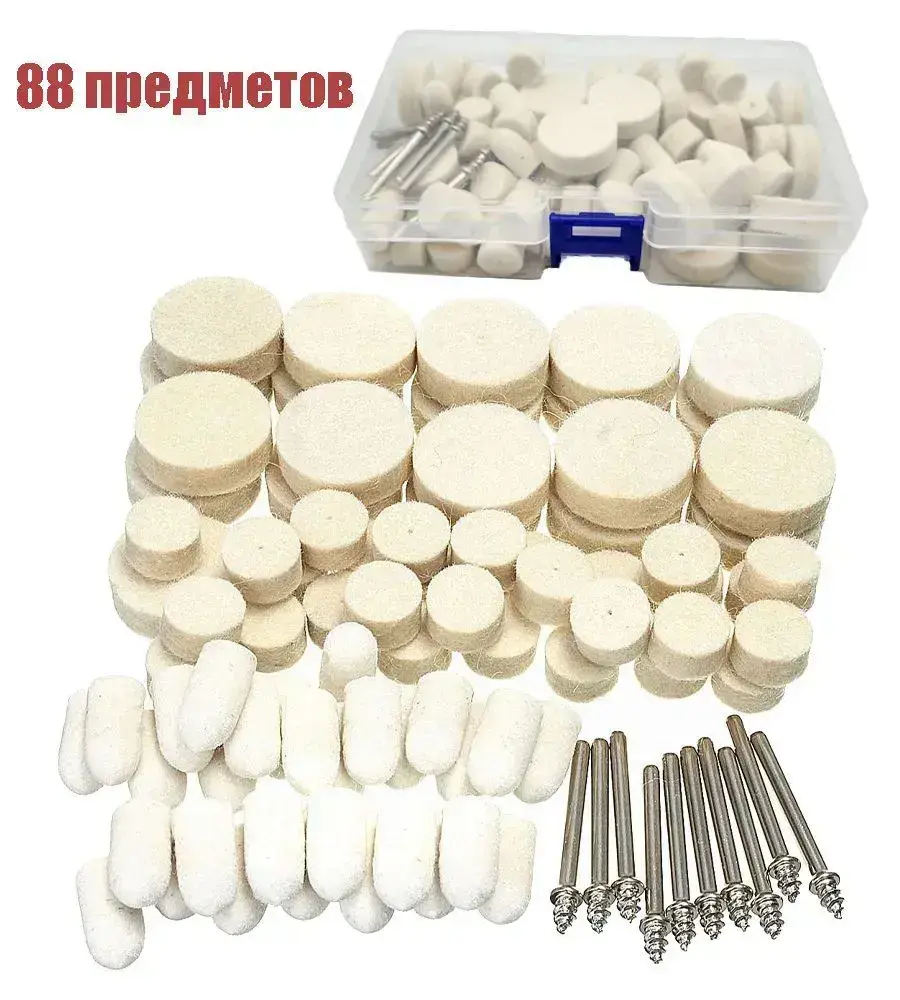 Набор полировальных насадок из войлока и фетра в кейсе 88штук