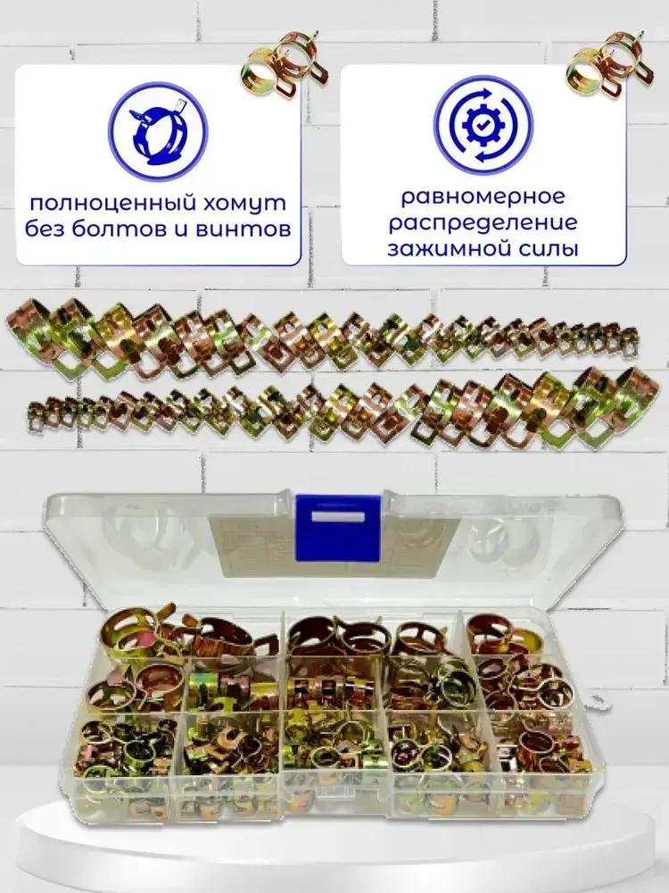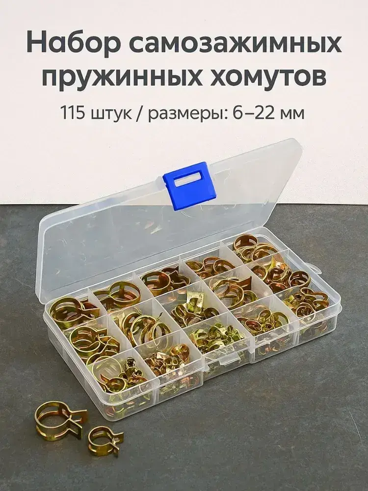 Набор пружинных самозажимных хомутов 115 штук 6мм-22мм