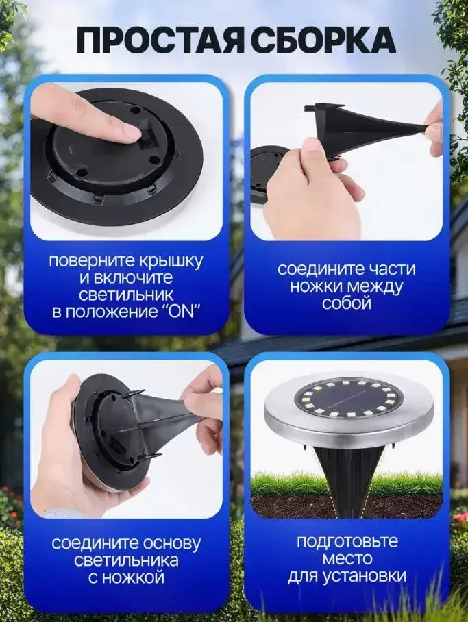 Набор садовых светильников на солнечной батарее уличные на газон 4шт