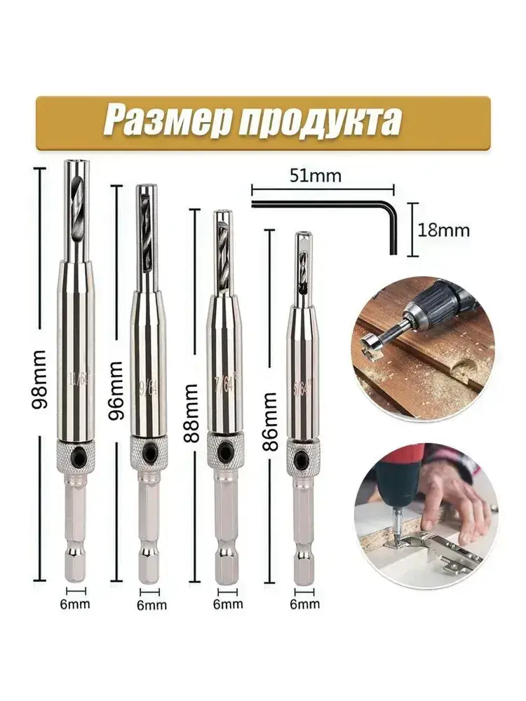 Набор самоцентрирующихся сверл по дереву для мебельных, дверных и оконных петель с шестигранным хвостовиком для шуруповерта и дрели, центровочное мебельное сверло для петли инструменты деревообработки