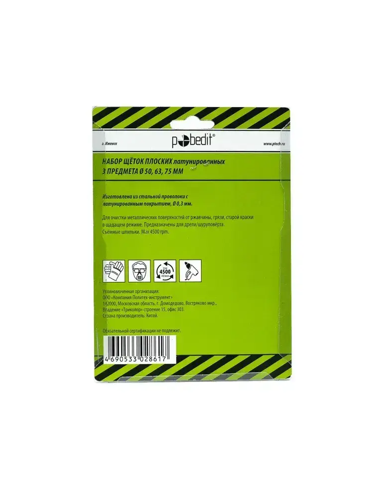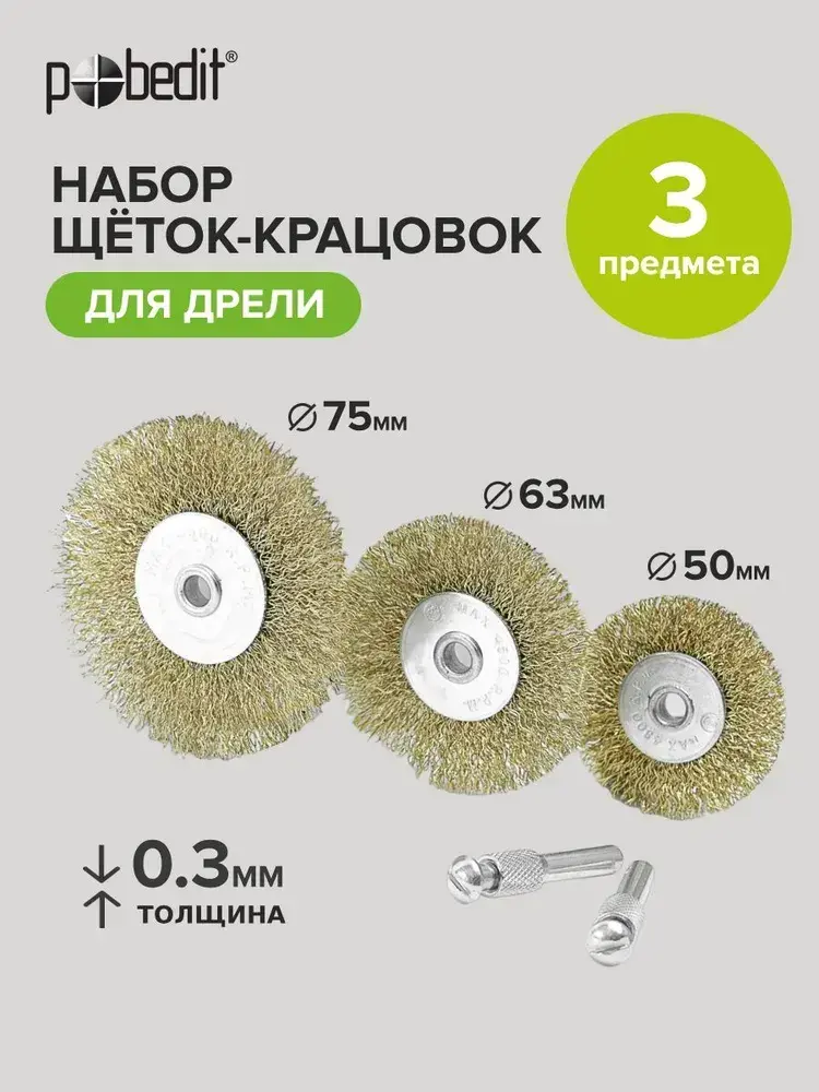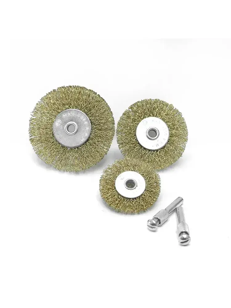 Набор щеток для дрели металлических со шпильками, плоские, латунированные