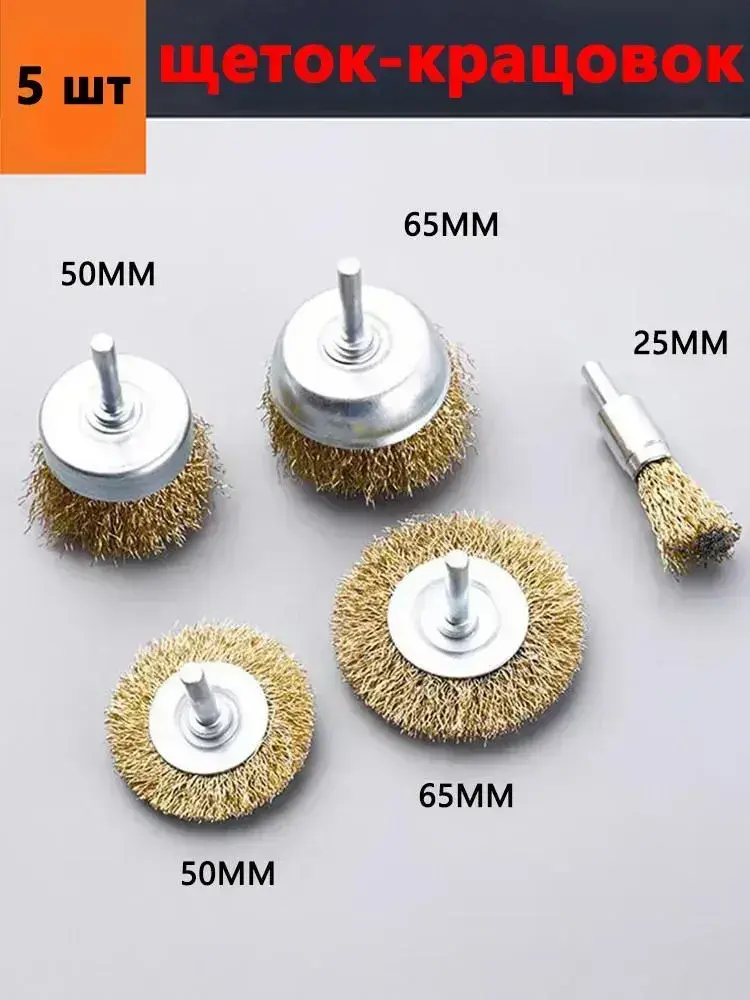 Набор щеток-крацовок для дрели и шуруповёрта. Корщётка металлическая для удаления ржавчины 5 шт