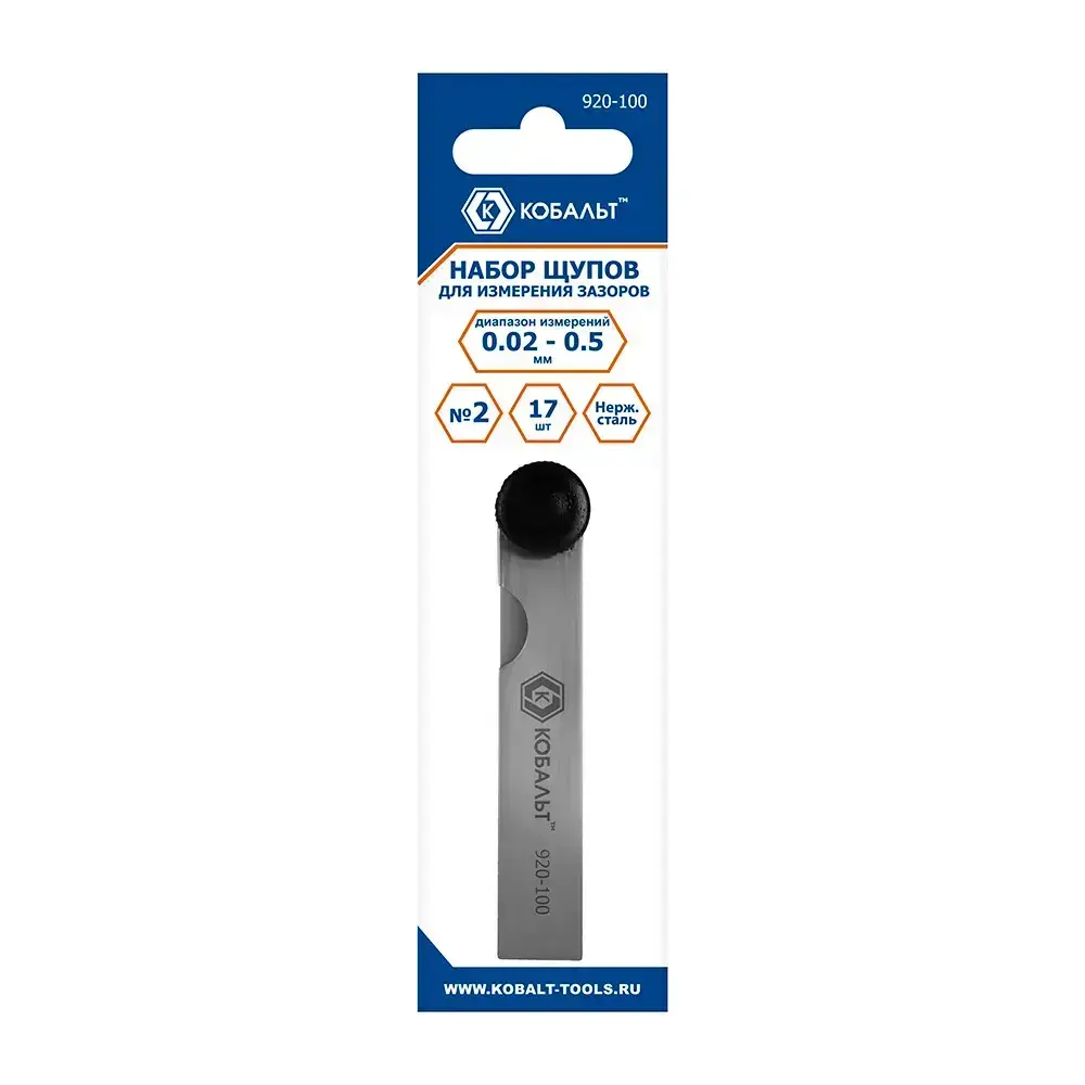 Набор щупов для измерения зазоров КОБАЛЬТ 70 мм, №2, диапазон измерений 0,02-0,5 мм, 17 шт., блистер (920-100), шт