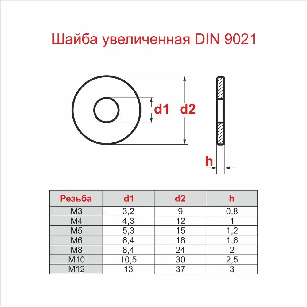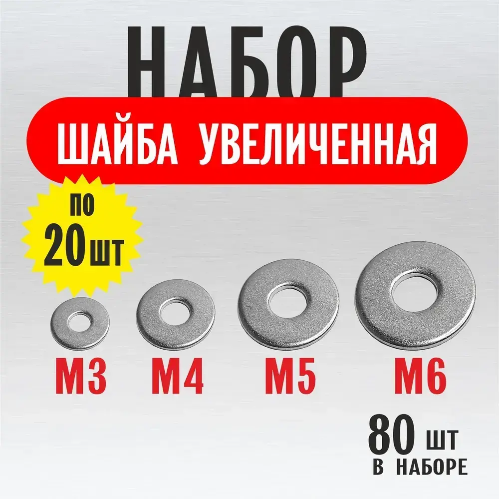 Набор Шайб М3 М4 М5 М6 по 20 шт. Шайба увеличенная, плоская, усиленная, кузовная, DIN9021
