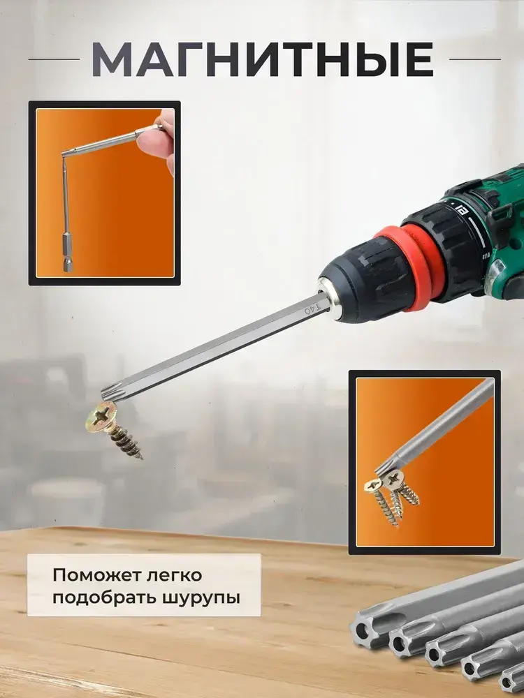 Набор шестигранных бит для шуруповерта 11шт, 100мм