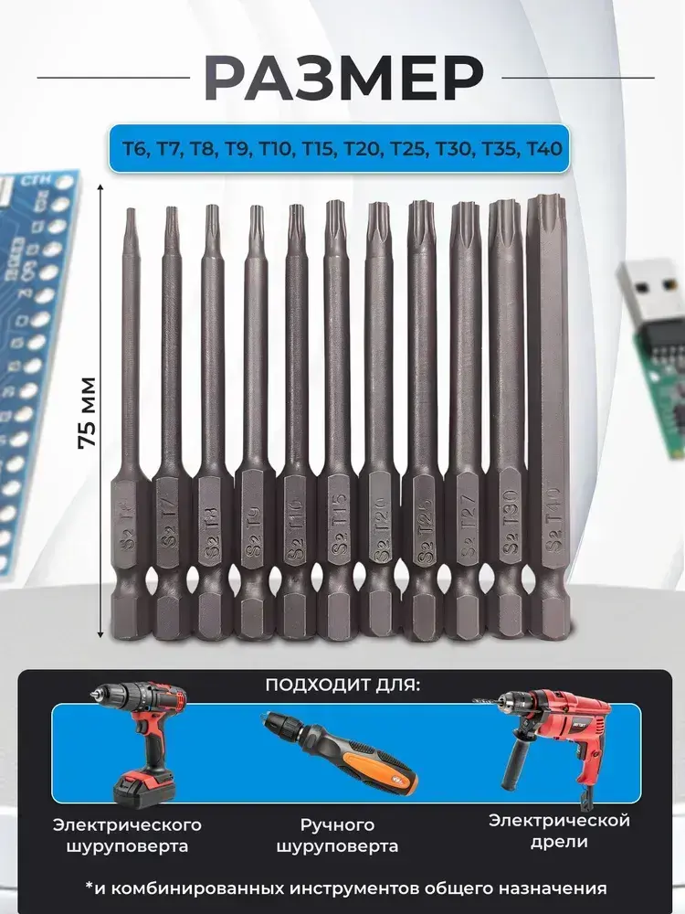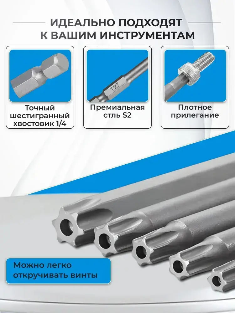 Набор шестигранных бит для шуруповерта 11шт, 75мм