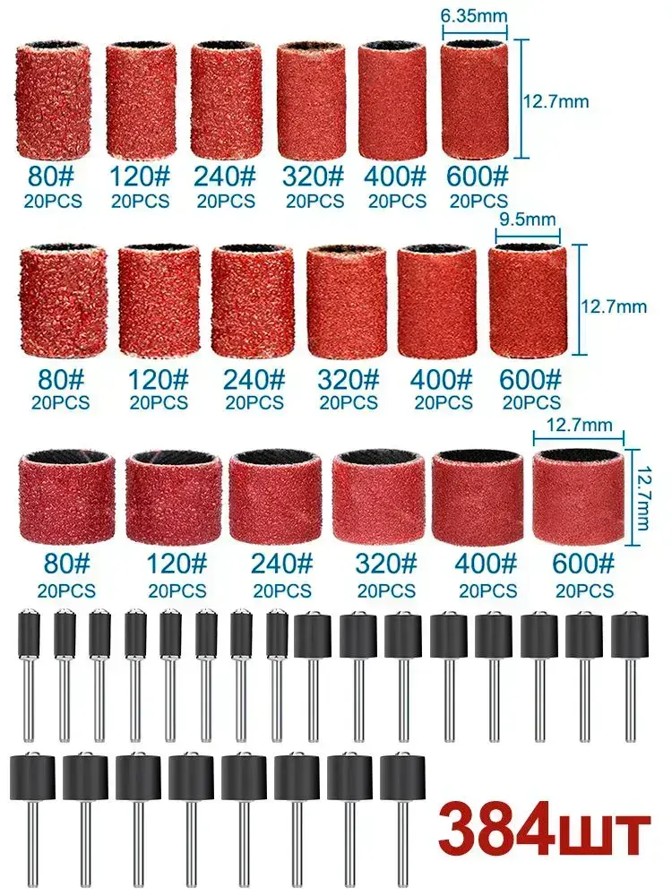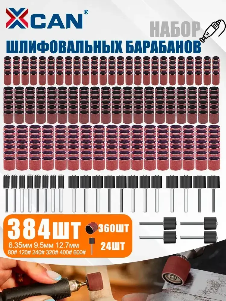 Набор шлифовальных барабанов для гравера XCAN в футляре, 384 шт.